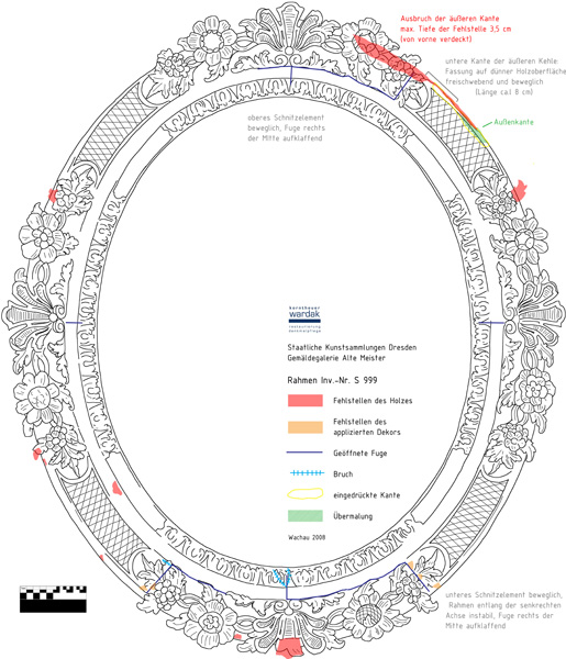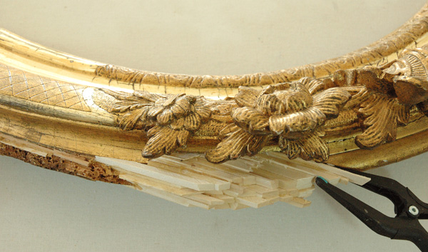 - Ergänzung der Fehlstellen in der Grundierung, einschließlich Vergoldung / Versilberung und Patinieren der Bereiche